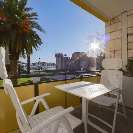 Tijdens een verblijf in Kula View Apartment Trogir van 72 m² kunnen gasten zich ontspannen op een terras op 4 km afstand van het Vela Draga strand.